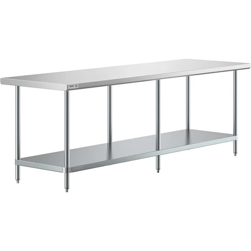 The expansive 30″ x 96″ work surface is ideal for a wide range of commercial tasks, from prepping and assembling dishes to organizing supplies and tools. This large surface area is perfect for kitchens with high production demands, allowing multiple chefs to work simultaneously without crowding. Its versatility makes it a practical addition for catering services, food prep areas, and other commercial environments where efficient workspace utilization is essential.